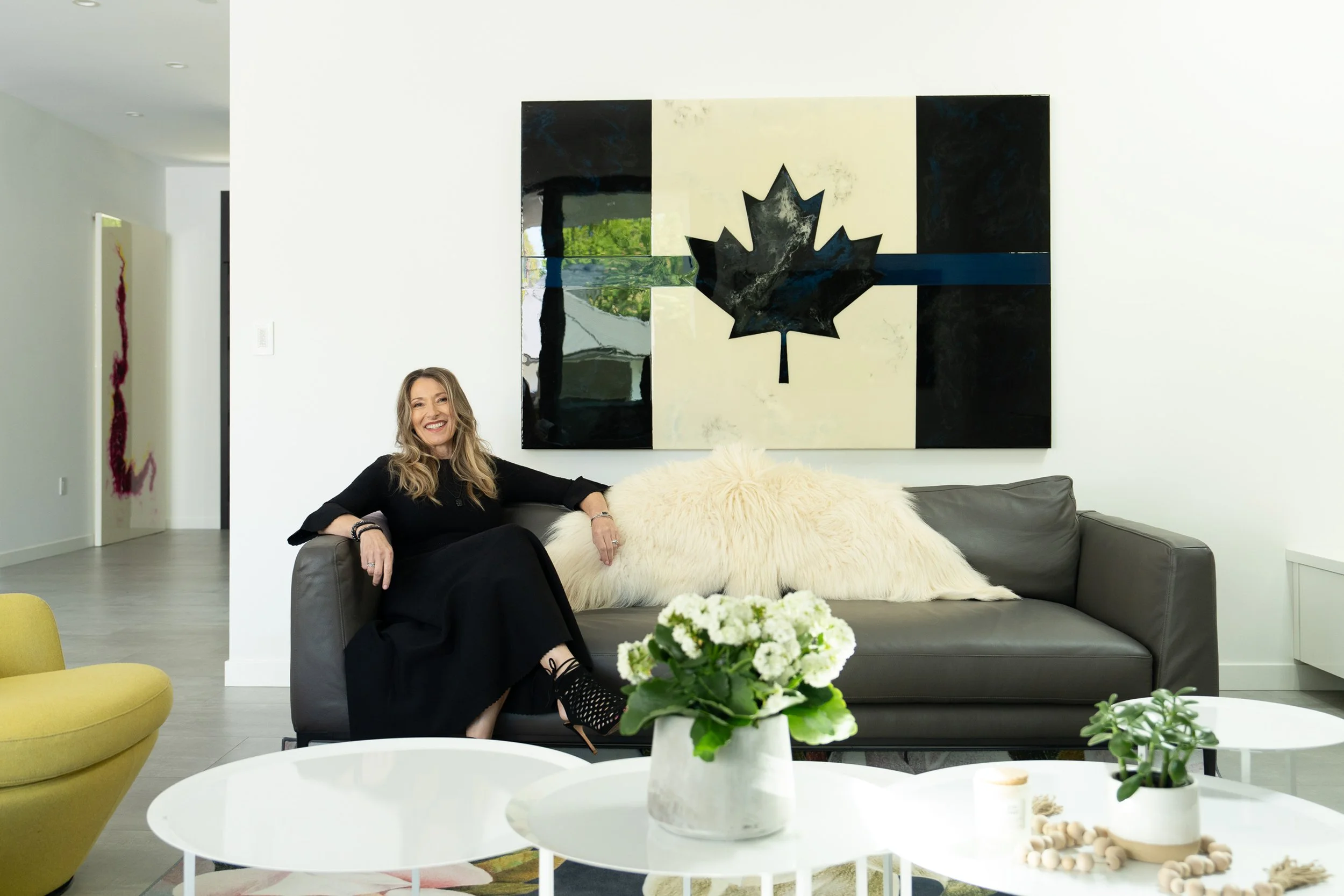 She lives in Vancouver, BC with her husband Ted, daughter Carly and golden retriever Miller. When she isn’t in her studio, she enjoys reading, walking in the woods and spending time at the lake.